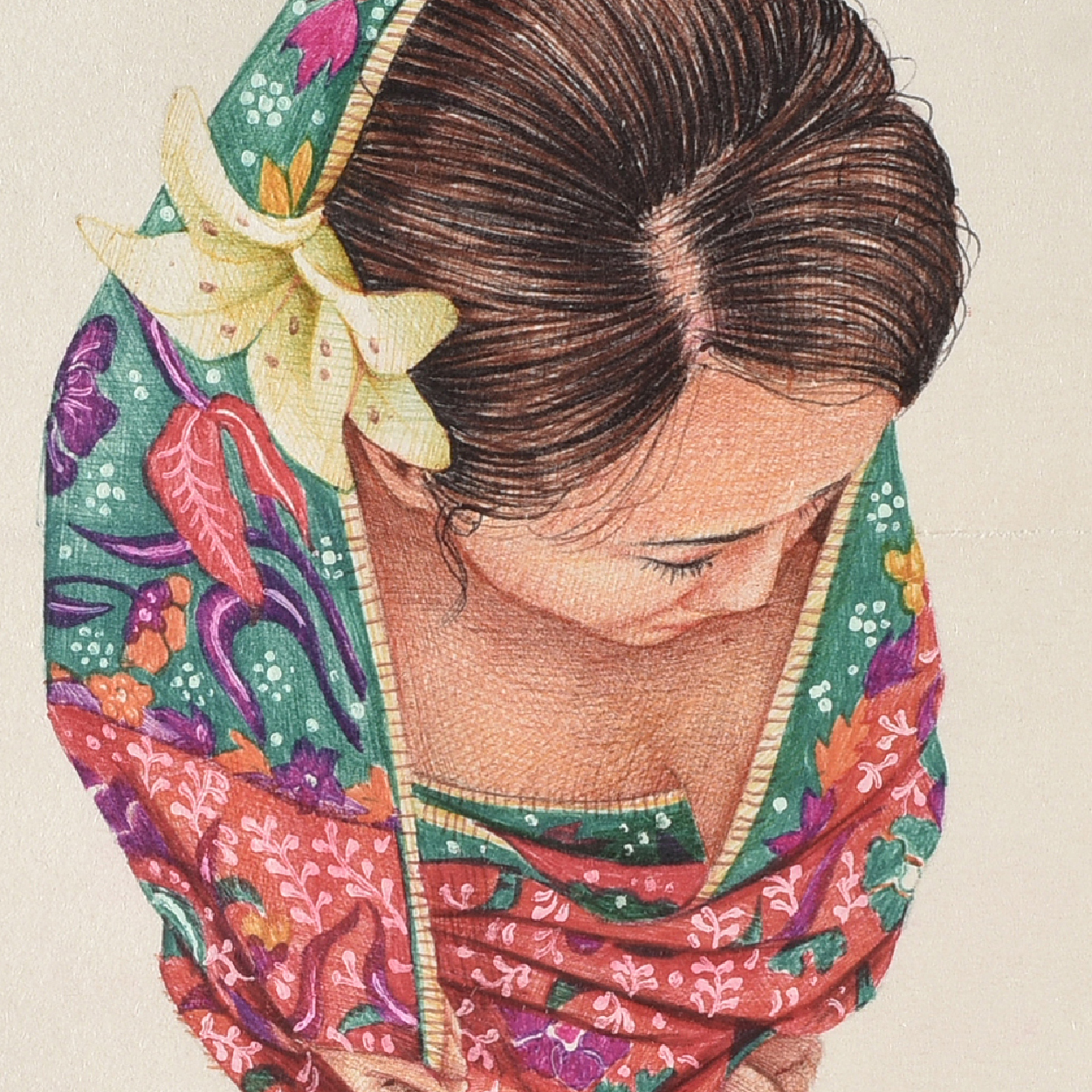 With a foundation in fashion design, Yoss Yoseff graduated from UiTM Malaysia in 2018 before pursuing a master’s degree in design technology. His practice is a heartfelt dedication to his mother, honouring her devotion to family through intimate explorations of portraiture and textiles. Working across a range of mediums including oil, acrylic, and his signature ballpoint pen drawings, Yoss embeds Malaysia’s cultural heritage into his works through batik and other surface treatments. His compositions navigate the dualities of joy and tribulation, rendered with tenderness and quiet depth. Since 2023, Yoss has emerged as a notable voice in the regional art scene. His debut solo exhibition, Ronta Jiwa, at TAKSU Kuala Lumpur was a sold-out success, followed by a two-man exhibition at Yap Ah Shak House in 2024. He has also collaborated with prominent local brands such as KHATAM. With a fresh perspective and a deep commitment to cultural storytelling, Yoss continues to establish himself as one of Malaysia’s promising young artists.